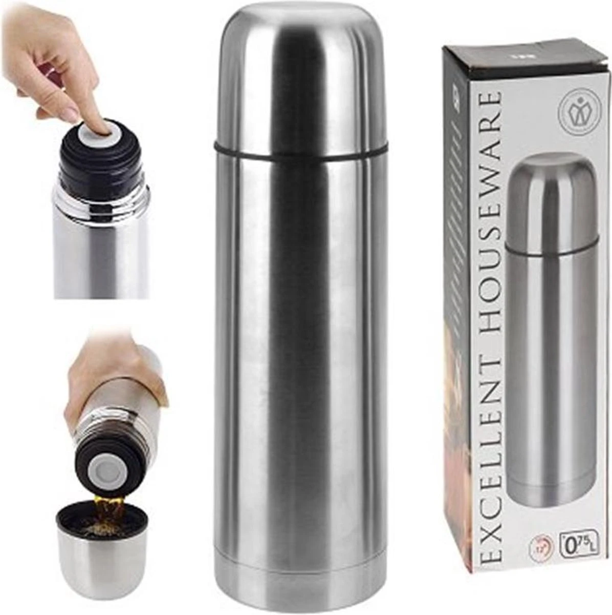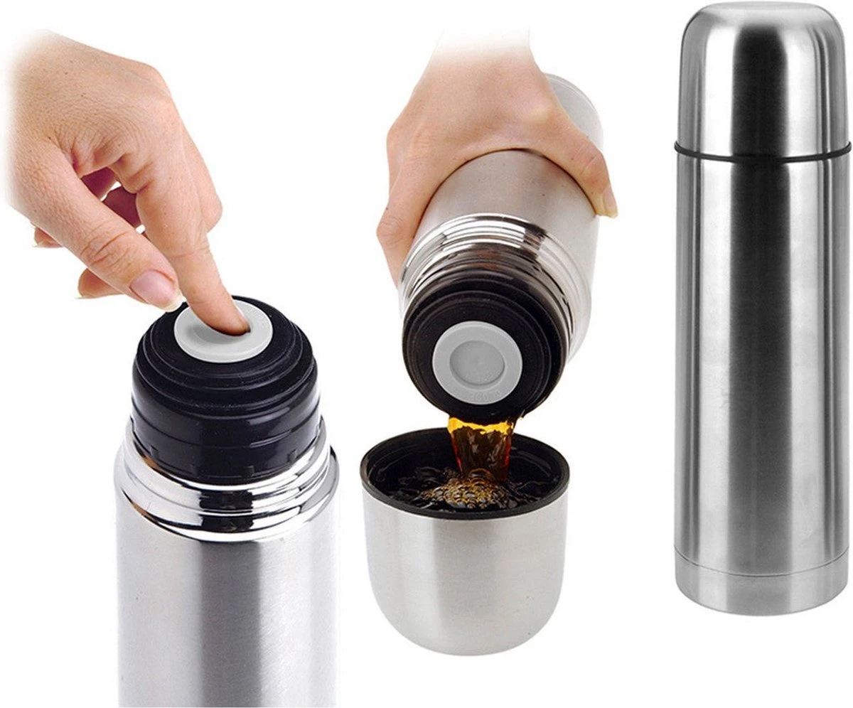 Een fijne en makkelijke roestvrije stalen thermoskan van 0,75 liter.