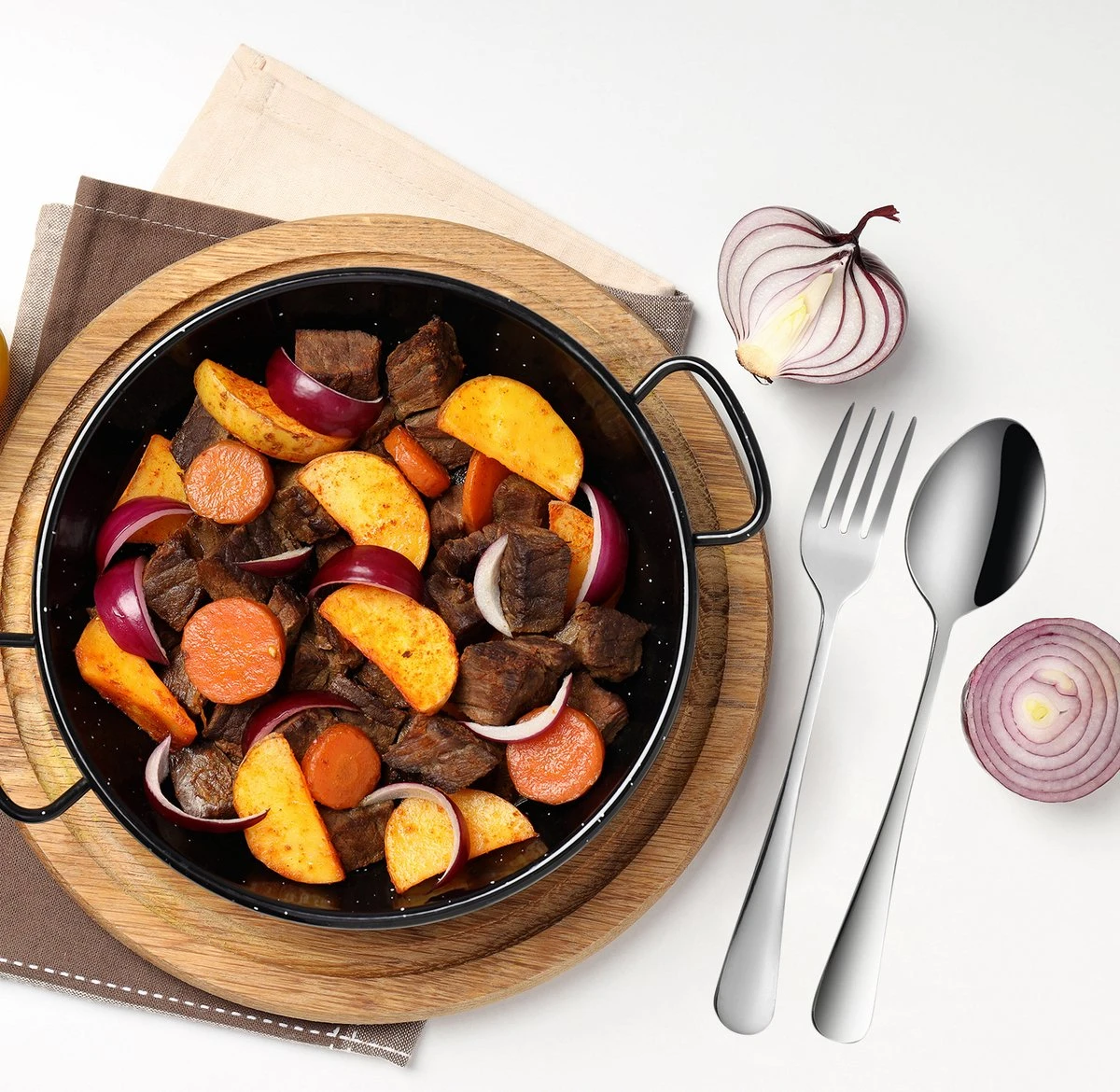 - Inhoud verpakking: 6 saladevorken, 6 vorken, 6 messen, 6 steakmessen, 6 lepels, 6 theelepels