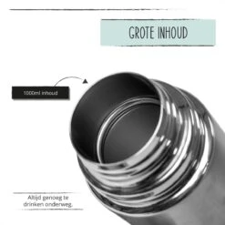 BUUF™️ Thermosfles 1 Liter – Isoleerfles – Thermosbeker – 24u/koud, 8u/warm – RVS – Zilver
